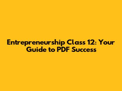Entrepreneurship Class 12: Your Guide To PDF Success