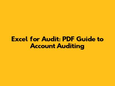 Excel For Audit: PDF Guide To Account Auditing