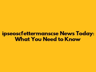 Ipseoscfettermanscse News Today: What You Need To Know