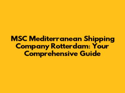 Hey guys! Ever wondered about MSC Mediterranean Shipping Company in Rotterdam? Well, you've come to the right place. Rotterdam is a major hub for global shipping, and MSC plays a significant role in this bustling port city. In this article, we'll dive deep into what MSC does in Rotterdam, why it matters, and how it impacts the world of international trade. Get ready to explore the fascinating world of maritime logistics!