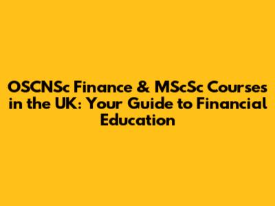 OSCNSc Finance & MScSc Courses In The UK