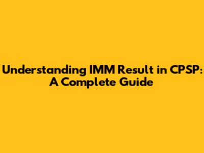 Understanding IMM Result In CPSP: A Complete Guide