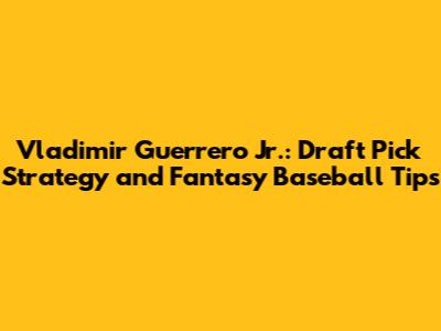 Vladimir Guerrero Jr.: Draft Pick Strategy And Fantasy Baseball Tips